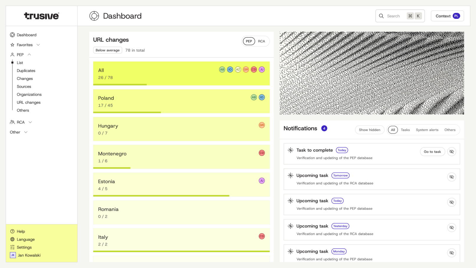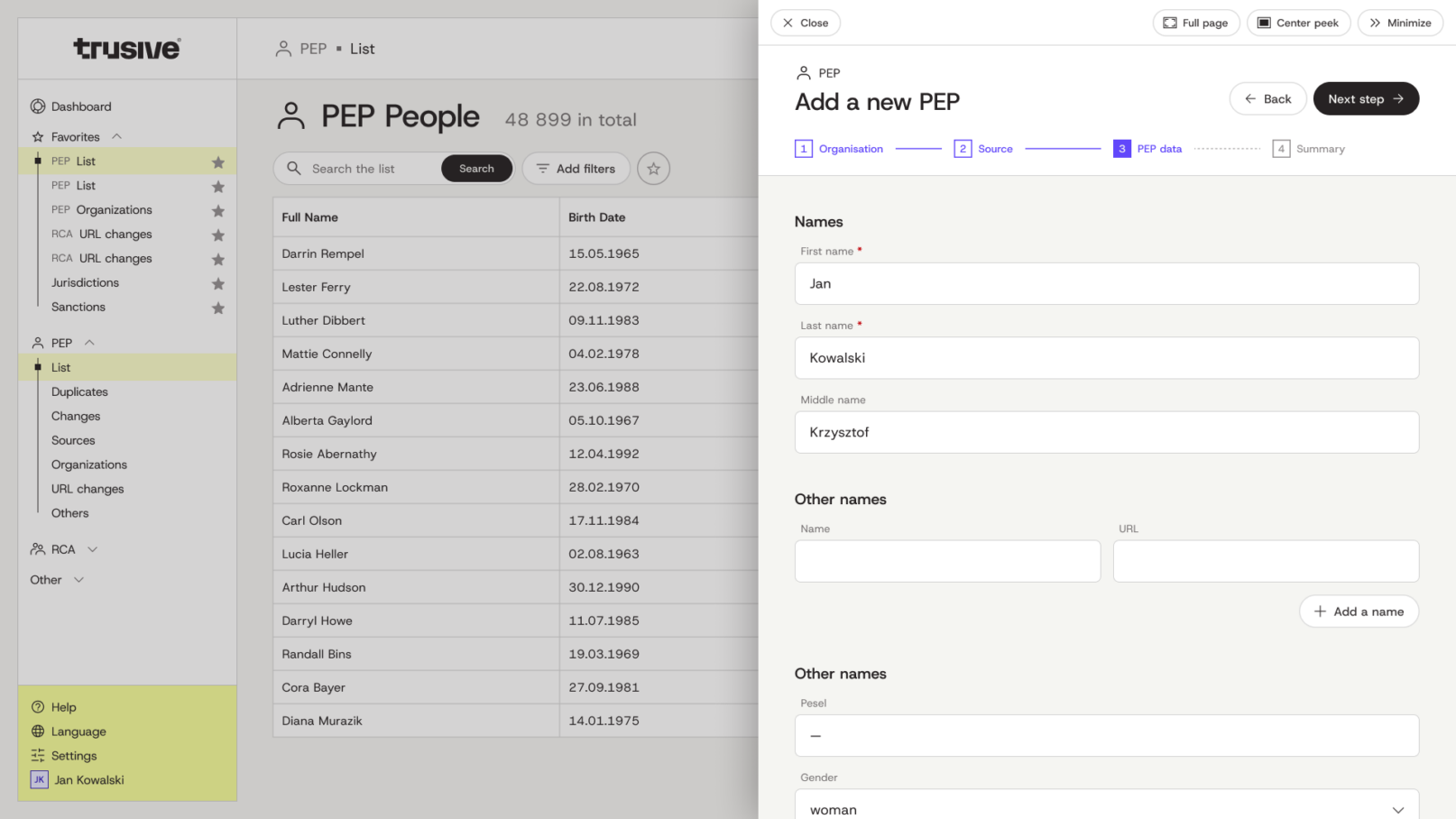 We use the Trusive Data Manager™ module to integrate all the data sources (e.g., local PEP, RCA, sanctions, warning lists).